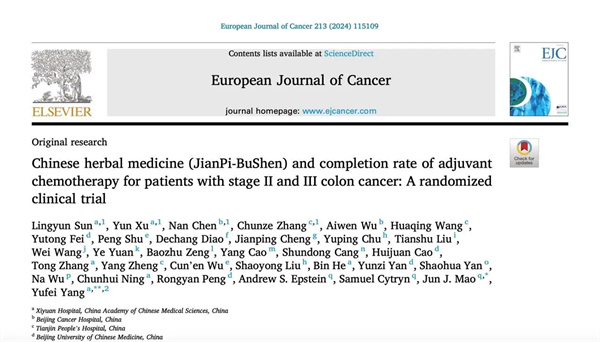 2024年11月2日,中國中醫(yī)科學(xué)院西苑醫(yī)院腫瘤科學(xué)術(shù)帶頭人楊宇飛教授團(tuán)隊(duì)在國際權(quán)威腫瘤學(xué)期刊《European Journal of Cancer》(Q1,IF 7.6)在線發(fā)表了“十三五”期間科技部“中醫(yī)藥現(xiàn)代化研究”重點(diǎn)專項(xiàng)課題“健脾補(bǔ)腎序貫方對結(jié)腸癌輔助化療協(xié)同作用及機(jī)制研究”的臨床試驗(yàn)研究結(jié)果。該研究采用全國多中心、隨機(jī)安慰劑雙盲對照臨床試驗(yàn)研究設(shè)計(jì),旨在評(píng)估中藥健脾補(bǔ)腎序貫方對提高高危II期、III期結(jié)腸癌根治術(shù)后輔助化療完成率的臨床療效。楊宇飛教授根據(jù)惡性腫瘤患者在化療期間不良反應(yīng)特點(diǎn)提出“兩階段三部曲”理論,并研制臨床經(jīng)驗(yàn)方“健脾補(bǔ)腎序貫方”,其中包括針對化療初期消化道不良反應(yīng)“健脾和胃”的六君安胃方以及化療中后期骨髓抑制“健脾益腎”的芪菟二至方,在臨床中已應(yīng)用二十余年,幫助了許多腫瘤患者在完成化療的同時(shí)降低不良反應(yīng)、提…